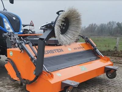 The Kersten KM 30070 H is a professional-grade hydraulic-driven sweeper with a 300cm working width and 70cm brush diameter, designed for heavy-duty and versatile applications. Equipped with a durable five-row poly spiral brush, it delivers exceptional debris removal on diverse surfaces. The pendulum suspension system ensures excellent performance over uneven terrain, while the mechanical angling of 25° allows left and right swiveling for enhanced maneuverability. With height-adjustable running wheels and optional accessories, this sweeper is ideal for demanding tasks such as cleaning roads, industrial sites, or municipal pathways.